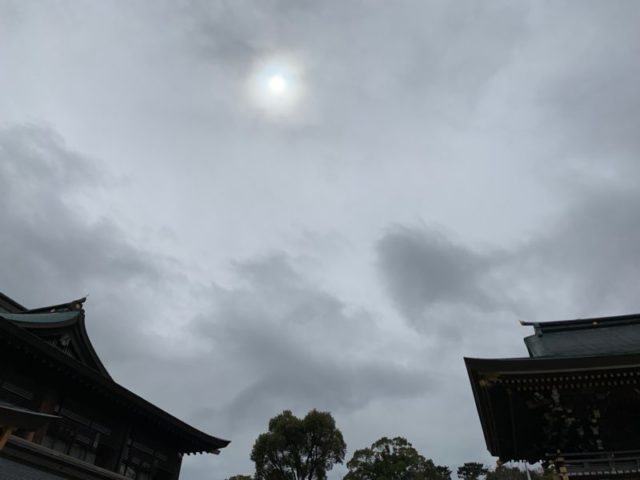この日はあいにくの曇り空でしたが11時40分くらいから12時すぎまでは時々、ほんとに時々太陽が出てきてくれました。これは運命だわ。