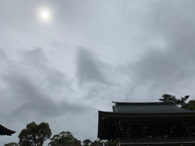 寒川神社のレイラインを出店のやきそば片手に待機して待つ。