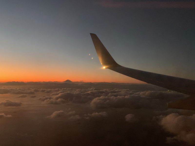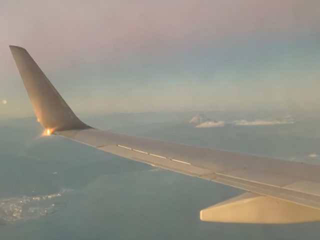 あちこちで初雪や雨模様だったので雲の上を飛行機が飛びます。