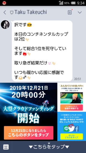 あ、このラインは私個人にきたものではないです。みなさんも登録するとラインがきます。この説明でわかってもらえます?余談ですが福山雅治はほぼほぼ毎日ラインをくれます♪