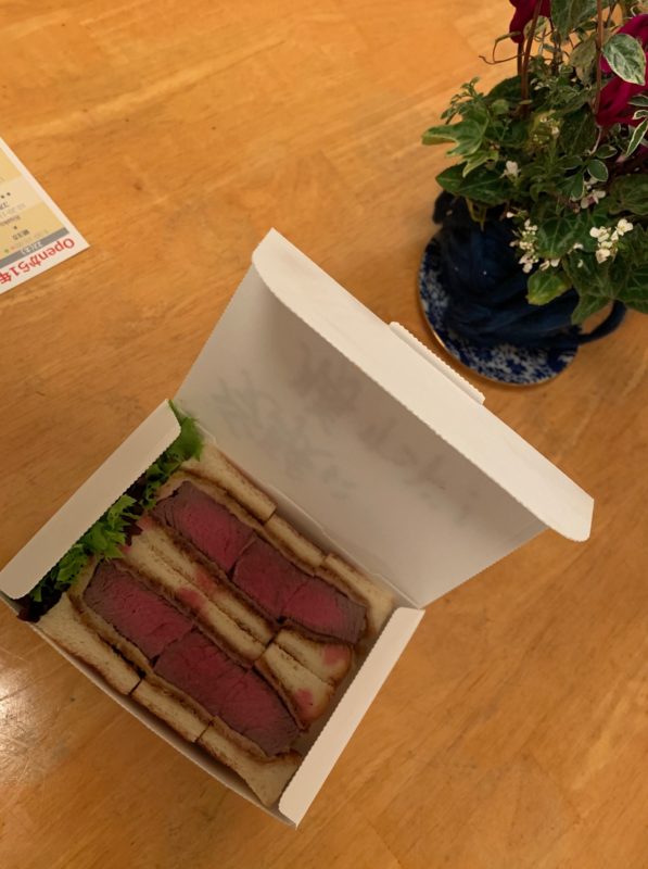 箱にマジックで書いているだけやないかーい!って思うでしょう。その通りなんだけど、受験生は食べます。受験に勝てるなら食べます。ところがこのカツサンドは牛の赤身肉なんでエネルギー源となります(筋トレ・ボディビルの人の食事)。生肉ではないので胃の負担も少ないし、衣が限りなく薄いので疲れている胃腸に負担は少ないです(油でもたれません)。しかもうまい!!精神的にも肉体的にも疲れてきた受験生の体力復活の食事です。テンションも上げることができます。その結果がうれしいお知らせになってます。
