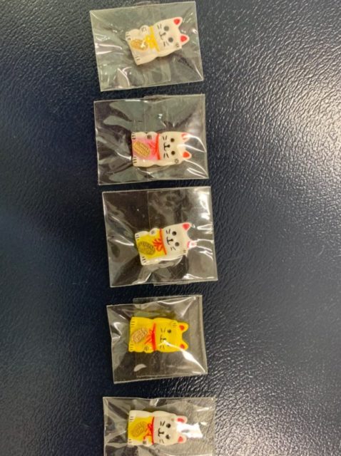 コレクションの一部をご覧ください。少しずつ違うんです。手も左右で意味が違います。この200円のおみくじをひくのが毎年の楽しみです。