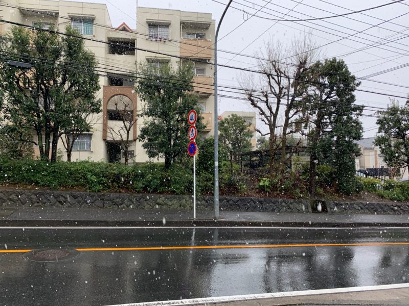 見えます?雪ですよ。季節外れの雪ですよ。