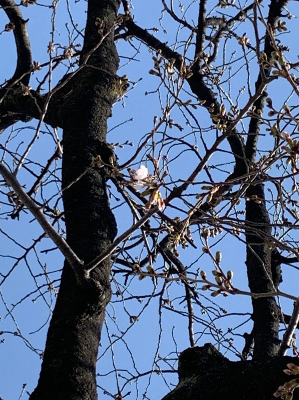 東京の靖国神社で開花宣言された日のたまプラーザ駅の桜の開花状況です。この日のたまプラーザ駅前の桜は5輪はなかったなぁ。もう緑の葉っぱのたまプラーザ駅前の桜です。