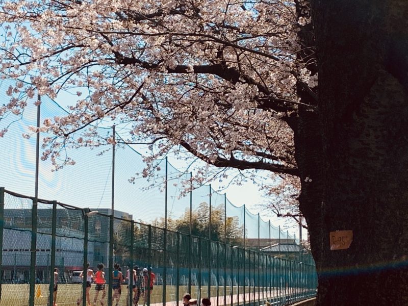 そこからはずっと右手には桜並木。左手のグランドは今年も箱根駅伝に向けて頑張っている選手さんたち。グランドの中央はサッカー部が練習してます。ここが私の深呼吸ポイントです。ハツラツとしたエネルギーを吸収します。