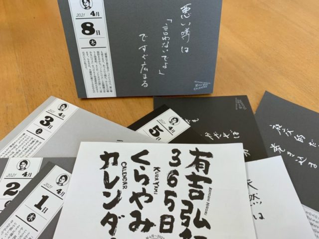「有吉弘行365日くらやみカレンダー」をたまプラ整体院に置いてみた