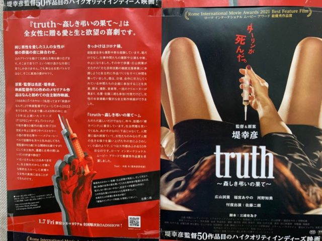 堤幸彦監督の50作品目の映画「truth」が年明け7日から全国で順次公開中。この辺ではイオンシネマ港北ニュータウンです。みんなで見に行きましょう。