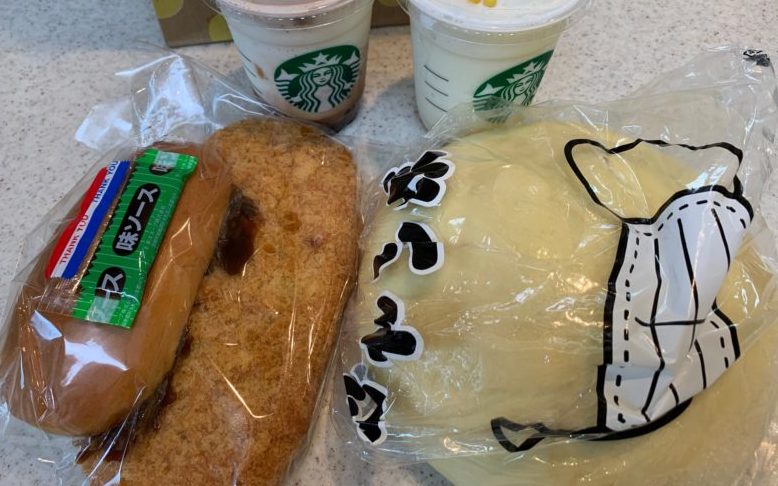 大きさ伝わります?スタバのコップが小さいわけではないですよ。コロッケパンとメロンパンが大きすぎなの。二つで500円以下でした。めちゃ安い。びっくりでしょ~