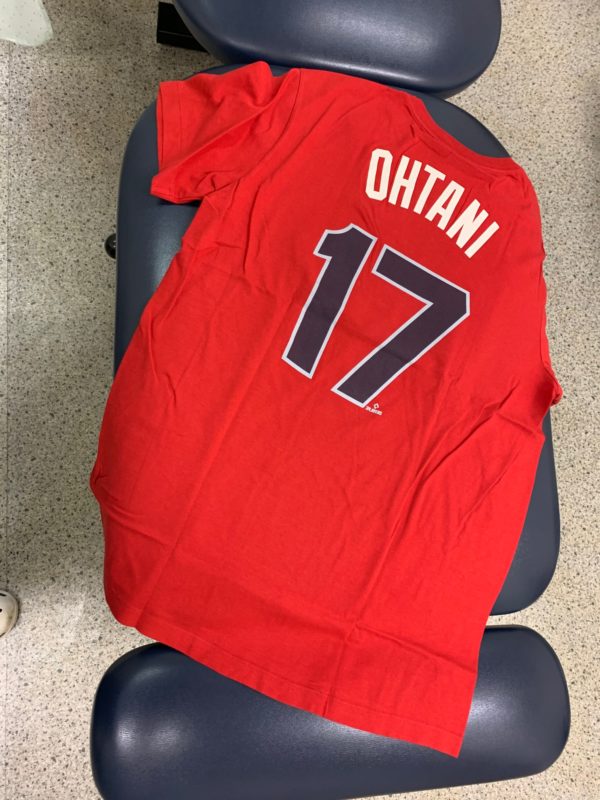 アメリカに出張に行かれた方がお土産にエンゼルスの大谷翔平さんTシャツを買ってきてきれました。しかも私の父に。