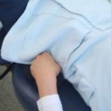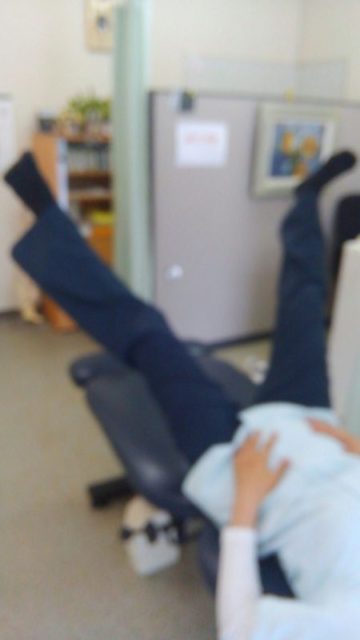 この時腰が浮かないように。腰が浮くと逆に腰痛になってしまいます。腰の下に手が入らない状態をキープできているかチェックしてください。