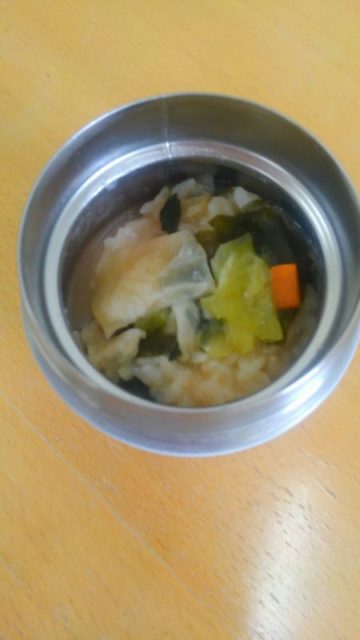 私はこの時期、超手抜き胃腸にやさしい昼ご飯を持参しております。おすすめです。朝に準備することは筒型の保温タイプの弁当箱にご飯を1/3~半分入れてお好みの具を入れてお湯をそそぐだけです。お昼には「おかゆ」が出来上がってます。シンプルなおかゆもよいですが、梅昆布茶、鶏がらスープの素など使っていろんなバージョンで楽しめます。